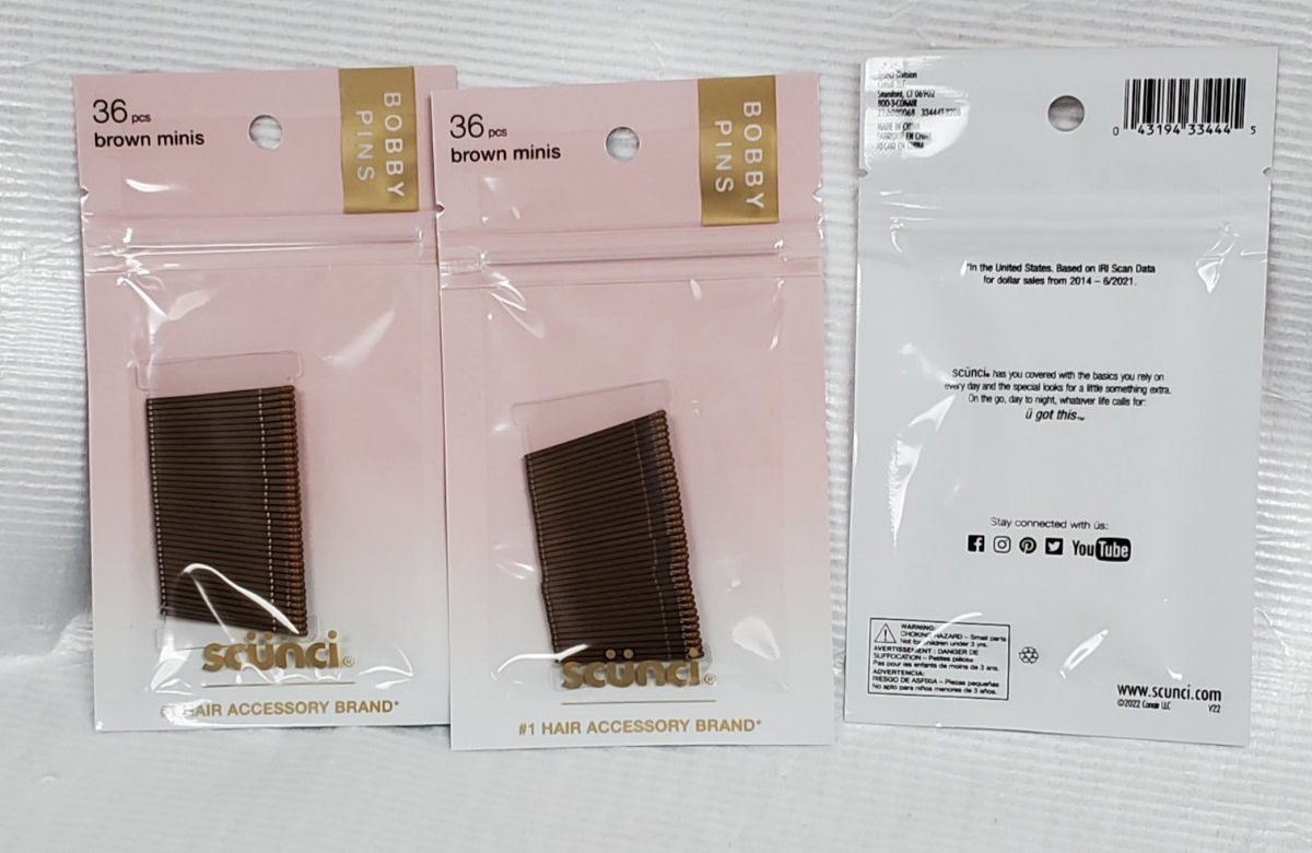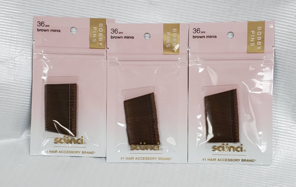 3 Pack Scunci Hair Accessory Bobby Pins Brown Minis 36pcs