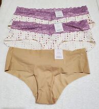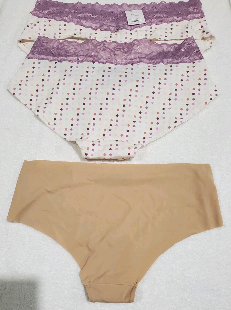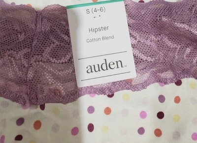 The product is a set of three Auden Women's Small (4-6) Hipster & Cheeky Panties. Made from a blend of nylon and spandex, these panties are lightweight and seamless with an opaque design. The mid-rise style and cheeky cut offer a comfortable fit, while the multicolor selection adds a playful touch to your lingerie collection. Perfect for everyday wear or special occasions, these Auden panties are a stylish and practical choice for women size small.