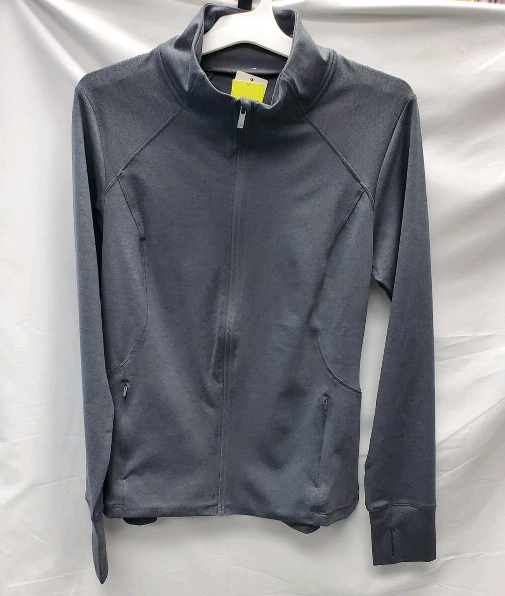 This jacket features soft curves that contour to the shape of your body to move with you as you stretch and flow. A full-length zipper offers as much coverage as you like, and it's concealed by a zipper garage for comfortable wear. Thumbholes keep the sleeves in place and keep your hands warm, and the stretchy knit fabric lends a soft, smooth feel for year-round wear. Secure side-entry pockets provide safe storage and maintain a sleek shape when closed.