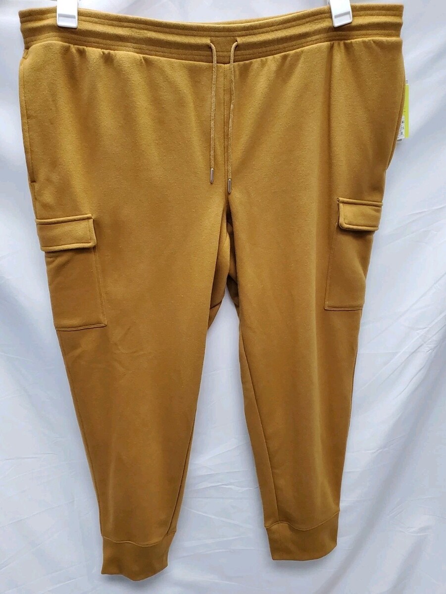 The All in Motion Men's XXL Brown Cotton Tapered Fleece Cargo Joggers are perfect for winter activewear with their solid brown color and polyester/cotton fabric. These joggers feature a pull-on closure, adjustable waist, and tapered leg style for a modern and comfortable fit. Designed for men who enjoy basketball or other athletic activities, the joggers have a 28-inch inseam and 45-inch waist size, making them suitable for a regular size XXL. Easy to care for with machine washable instructions, these joggers are ideal for staying warm and stylish during your workouts.