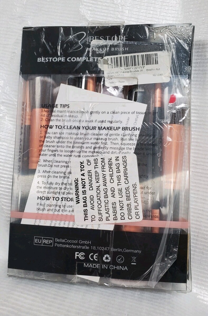 BESTOPE 16 Piece Complete Makeup Brush Set (Rose Golden)