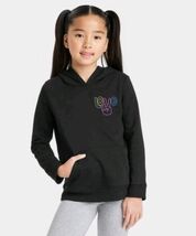 The Cat & Jack Girls' XS (4/5) Fleece Pullover Hoodie in Black is a stylish and cozy hoodie designed for girls. With a graphic print featuring a peace sign, this hoodie is perfect for young girls who love to express their love and peace theme. The fabric is fleece, making it soft and comfortable to wear. It also includes a hood and pockets for added convenience and functionality. Perfect for everyday wear or for lounging at home, this hoodie combines fashion and comfort effortlessly.
