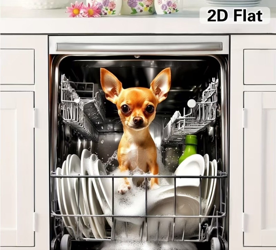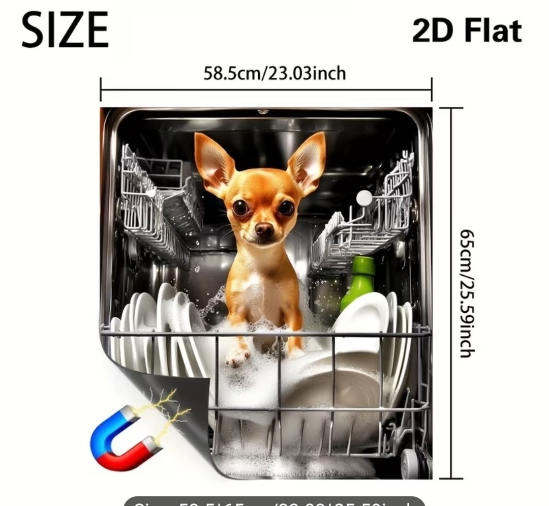The Chihuahua Puppy Dishwasher Magnet Cover is a colorful and charming addition to any kitchen. Featuring a cute dog theme, this magnet measures 23" x 25.59" and is designed to cover the dishwasher while also adding a touch of personality to the room. Made by the brand Magnet, this unique item is sure to brighten up your kitchen decor with its playful design.