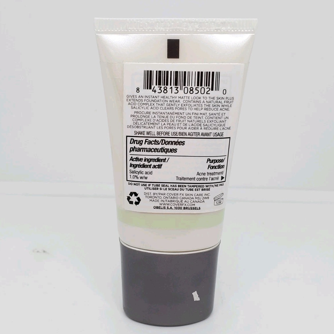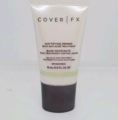 Cover FX Mattifying Primer with Anti-Acne Treatment 15ml/0.5Fl oz. Product contains 1.0% Salicylic Acid to help with acne & reduce pores.