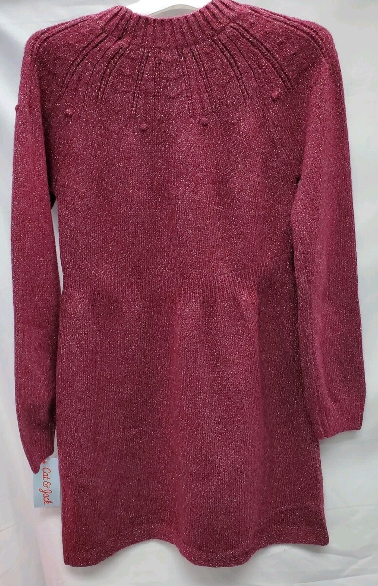 • Girls Medium 7/8 Burgundy Crochet Sweater Dress Cat & Jack image 1