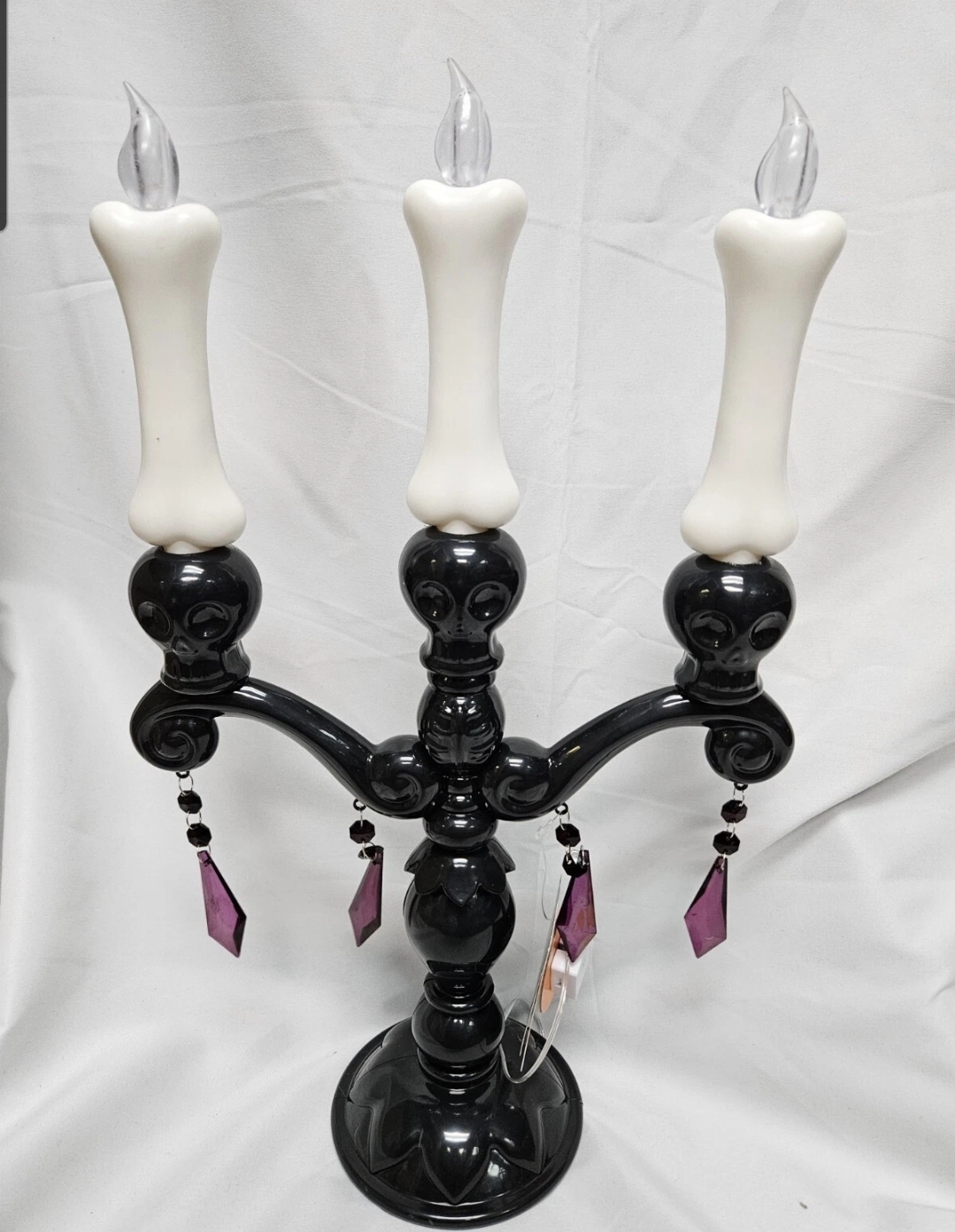 Brand New Hyde & Eek Candelabra Lit 3 Candle Holder Halloween Jeweled Bones Skulls