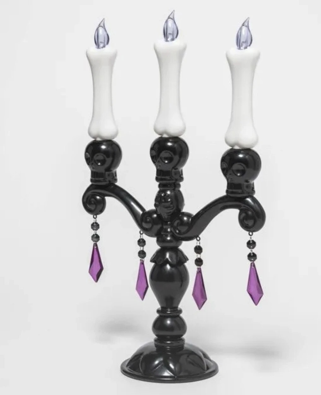 Hyde & Eek Candelabra Lit 3 Candle Holder Halloween Jeweled Bones Skulls