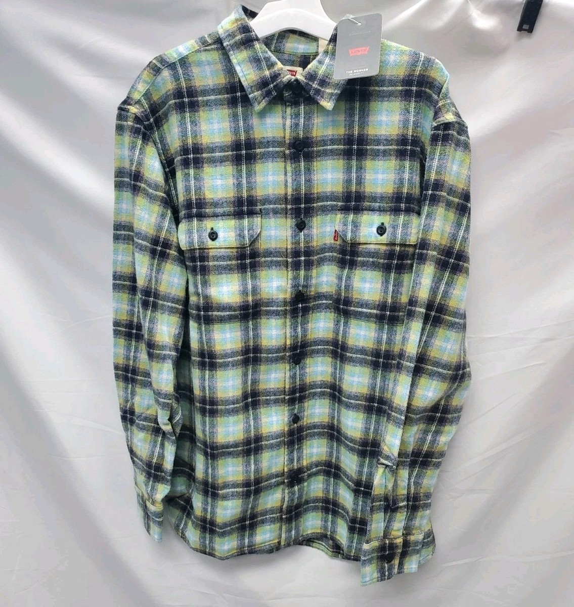 Get your hands on this Levi's Men's Classic Worker Plaid Long Sleeve Button-Down Shirt in warm olive, size medium! This button-up shirt features a stylish plaid pattern and a comfortable relaxed fit. Its button-down collar and long sleeves give it a classic look that's perfect for any occasion. Made of 100% cotton, this shirt is both durable and breathable.
