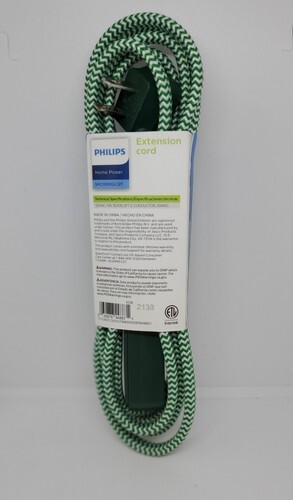 This high-quality Philips extension cord is the perfect solution for your indoor power needs. With 3 outlets and a generous 8ft cable length, it's ideal for powering multiple devices in your home or office. The cord features a durable braided design and comes in an eye-catching green and white color scheme, making it both stylish and functional. The plug type is United States and the unit type is ft.