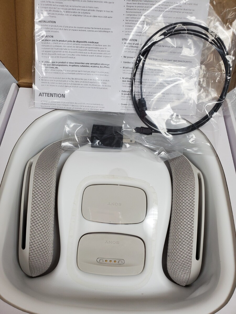 ☆Not Tested ☆The Sony SRS-WS1 Wearable Neck Speaker in Light Gray is a portable audio device designed for hands-free use. With a sleek design and comfortable fit, this neck speaker from Sony features stereo mini jack inputs for audio compatibility. It also offers USB connectivity for easy charging and use. The durable plastic material ensures longevity, making it a practical and convenient option for enjoying music on the go.