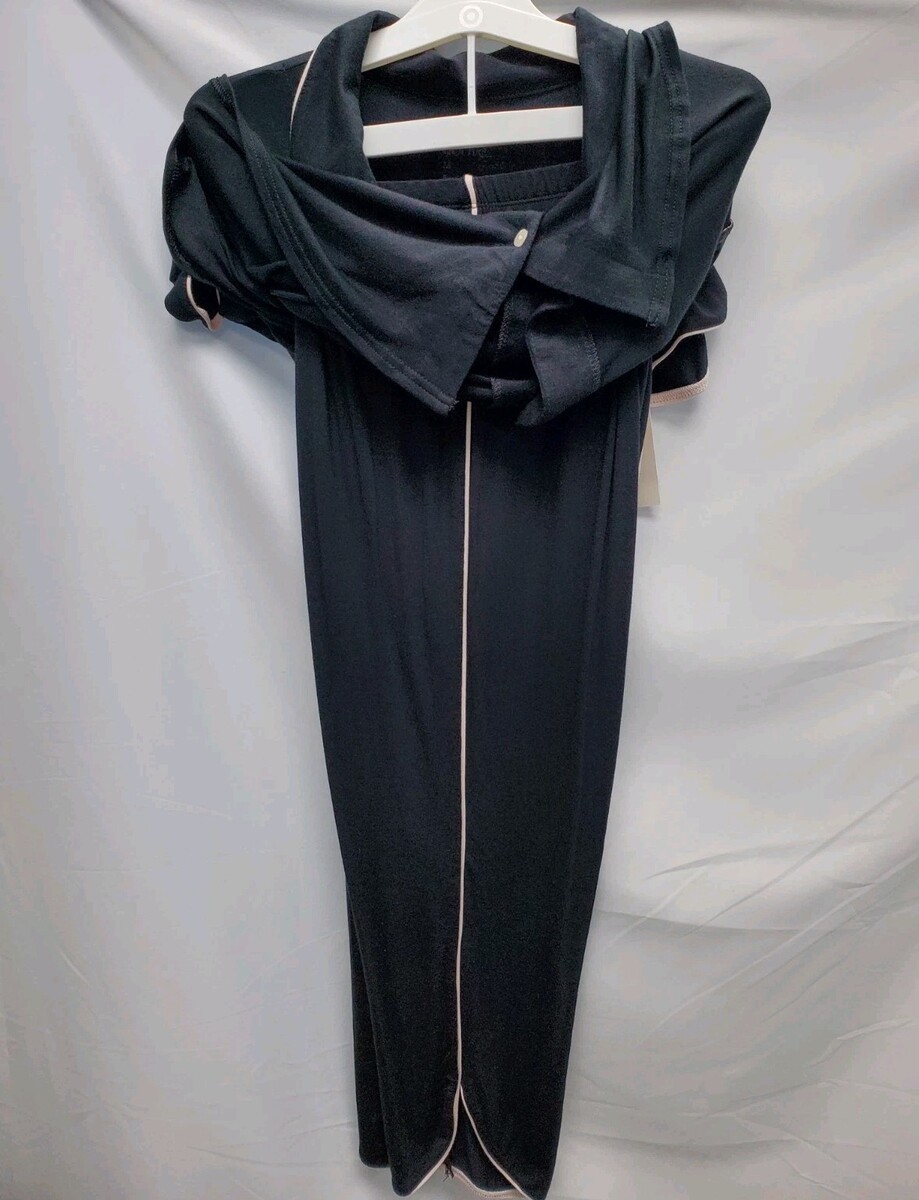 The Stars Above Women's Medium Beautifully Soft Pajama Set is a cozy and stylish addition to any woman's sleepwear collection. Made from lightweight modal material, this 2-piece set features a solid black color with pink trim accents, adding a touch of feminine flair. The long-sleeve top has a collared neckline and button closure, while the matching bottoms have a button and pocket detail. Perfect for the winter, fall, and spring seasons, this pajama set from Stars Above offers both comfort and style for a good night's sleep.