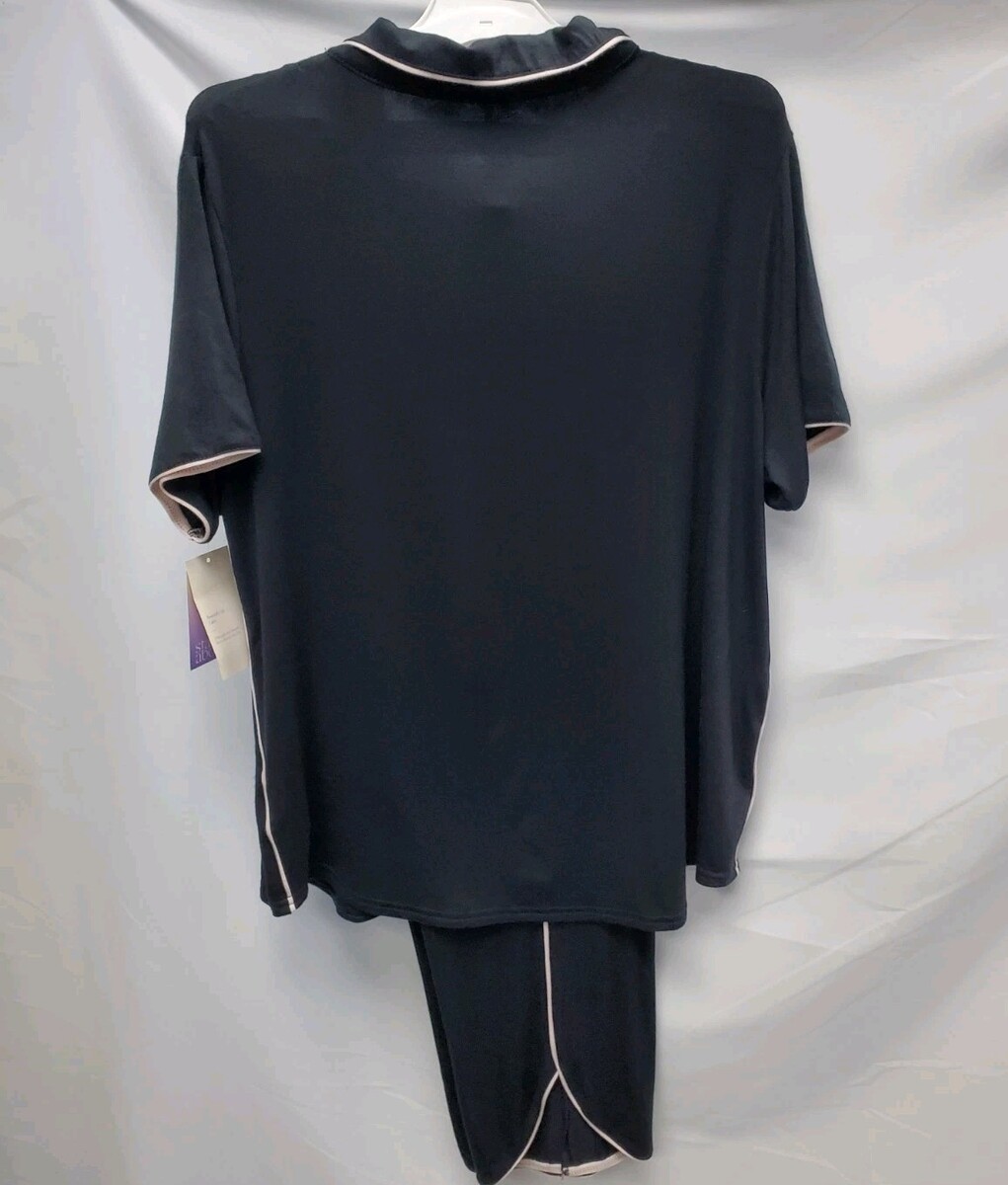 • Stars Above Women's Medium Beautifully Soft Pajama Set 2 Piece Black/Pink Trim image 2