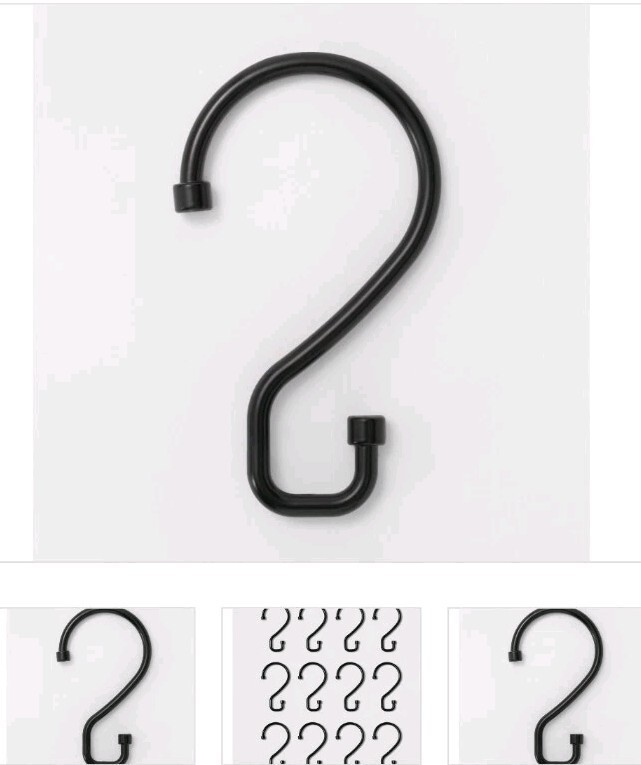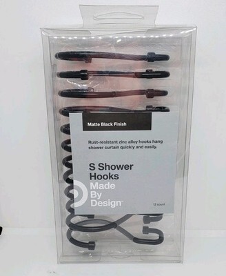 The Threshold S Hook Shower Curtain Rings in Matte Black are designed for use in the bathroom. Made of durable zinc alloy, these shower curtain hooks are in a sleek black color and come in a pack of 12. The matte finish adds a modern touch to the decor, making them suitable for any shower curtain. Perfect for adding a stylish and functional accessory to your bathroom, these hooks provide a secure and easy way to hang your shower curtain.