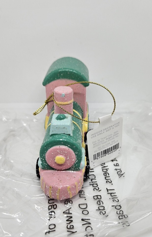 Welcome festive joy into your home with the 4-Inch Plastic Train Christmas Tree Ornament from Wondershop™. This train Christmas tree ornament comes in a green, yellow and pink colors and is adorned with a drop-like design for a fun and festive look. Easy to hang with the built-in loop, this plastic Christmas tree ornament is recommended for indoor use only.